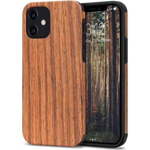 Compatible avec l'étui hybride Mini Case en polyuréthane thermoplastique grain de bois Outside Design pour iPhone 12 (bois de santal rouge)