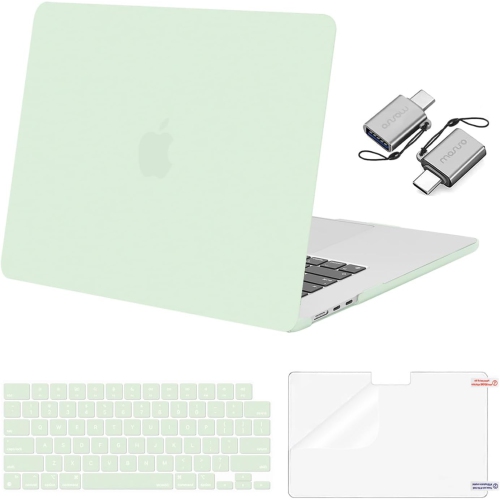 Compatible avec l'étui pour MacBook Air 15 po à version 2023 2024 M3 A3114 M2 A2941, écran Retina liquide Touch ID, étui rigide, couverture-clavier, protecteur d'écran et adaptateur de type C, vert thé