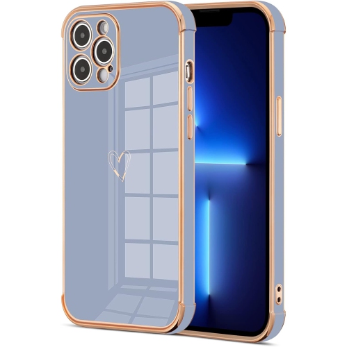 Compatible avec l'étui Pro 13 de iPhone avec coeur doré, bordure en placage de luxe, étui mignon avec objectif pour appareil photo complet