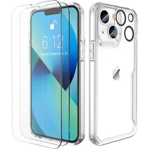 Compatible avec les étuis pour iPhone 13 avec protecteur d'écran en verre trempé 2 et protecteur d'appareil photo arrière 1, antichoc