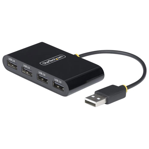 Améliorez les capacités de connexion de vos appareils avec le concentrateur à 4 ports USB-A à USB-A de StarTech. Ce concentrateur compact et léger alimenté par USB vous permet d'ajouter quatre ports USB 2.0 au moyen d'un seul port USB 2.0 ou 3.0. Facile à transporter, il tient dans votre sac à portable et ne nécessite aucun adaptateur d'alimentation externe.