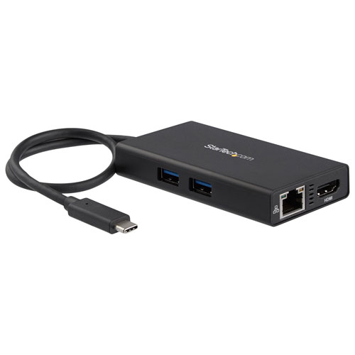 Améliorez la connectivité de votre portable grâce au concentrateur multiport USB-C de StarTech. Doté d'un port USB-C, d'un port HDMI et de deux ports USB-A, il offre des options polyvalentes pour raccorder des périphériques et des moniteurs. Le port HDMI prend en charge une résolution Ultra HD 4K à 30 Hz avec audio, offrant des images nettes et un son immersif pour votre présentation.
