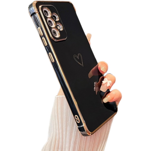 Conçu pour l'étui du Galaxy A53 de Samsung, motif coeurs Love à bordure en placage adorable avec protection d'objectif d'appareil photo