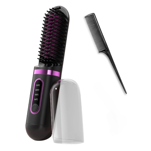 Cordless Hair Straightener Brush & Travel Hair Brush,4-Temp LCD Display,Anti-Scald,Portable Mini Beard Straightener,Hot Comb Styling Tool with Dust-proof Cover
