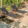 Costway 2PCS Patio Rattan Lounge Chair Chaise Recliner Wood Back Adjust W/Folding Table
