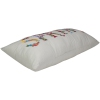 Coussin décoratif floral beige à ressort. Orné de fleurs en rouge violet, rose et jaune et orange. Couture cousue