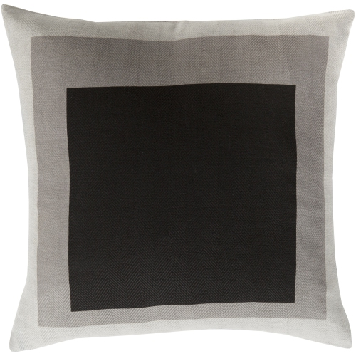 Coussin décoratif carré brun et noir à motif de blocs. 18 po de hauteur, 18 po de largeur et 4 po de profondeur. Tissu tissé avec motif d’écran