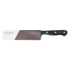 La lame est forgée en acier X50CrMoV15 et aiguisée avec la technologie Precision Edge (PEtec) pour un tranchant supérieur. Il offre une excellente rétention des bords avec une dureté Rockwell de 58. Cet acier inoxydable à haute teneur en carbone comprend du vanadium pour une durabilité et une résistance à l'usure, et du molybdène pour une dureté et une résistance à la corrosion. La construction monopièce offre équilibre et solidité lors de la coupe. Le manche à trois rivets est fait de matériau synthétique très durable qui résiste à la décoloration et à la décoloration, avec une mitre complète et un protège-doigts.