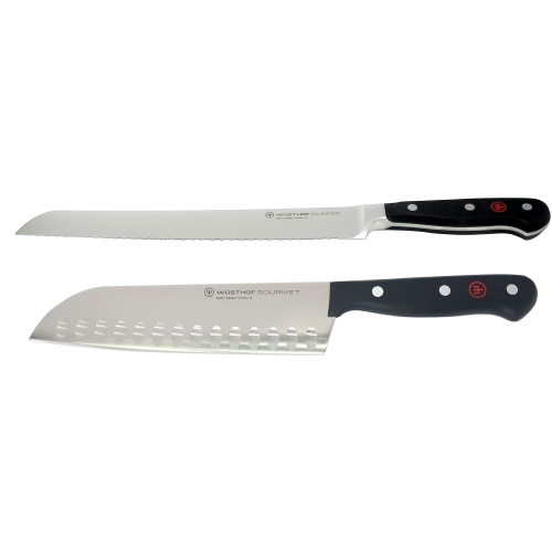 Couteau à pain de 9 po Classic de Wusthof et couteau Santoku à bord creux de 7 po Gourmet de Wusthof