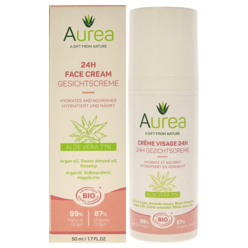 Cette crème pour le visage Aurea 24H naturelle et hydratante nourrit et renforce la peau, la laissant douce et souple. Convient à tous les types de peau. Avec Aloe Vera et huiles de haute qualité .