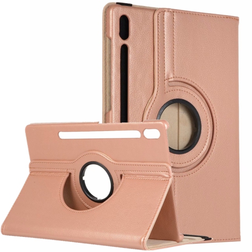 [CS] 360 Étui intelligent pour tablette en cuir PU rotatif pour Samsung Tab S9+ S9 FE+ S10+ Plus 12 4 po, X810/X610/X820, rose doré