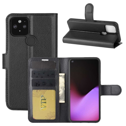 [CS] Étui pour Pixel 5 de Google, étui folio en cuir magnétique à rabat avec fente pour carte, noir