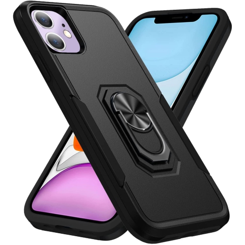 【CSmart】 Étui de béquille magnétique résistant aux chocs avec support de bague pour iPhone 11 (6.1"), Le noir