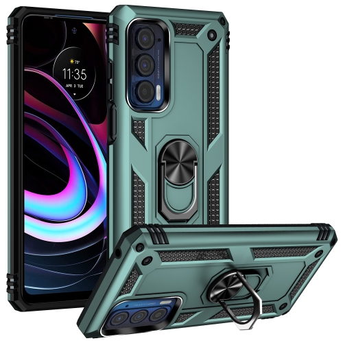 【CSmart】 Étui rigide magnétique hybride anti-chute avec support pour anneau pour Motorola Moto Edge 2021, vert minuit
