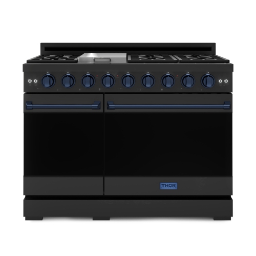Cuisinière au gaz professionnelle de 48 po avec four double Gordon Ramsay de THOR Kitchen – Noir/bleu marine