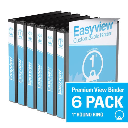 Davis Group – reliure à anneaux ronds personnalisables EasyView® Premium, paquet de 6, 1 po, noir