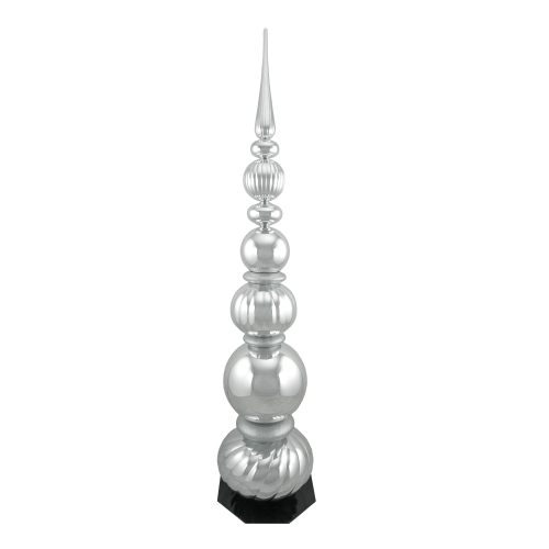 Décoration de Noël en forme de tour à faîteau argentée. Fini brillant rehaussé de paillettes argentées. Format commercial; assemblage facile requis