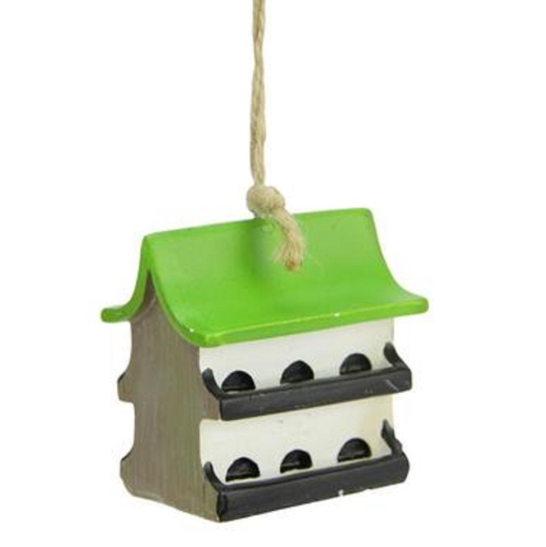 Décoration de Noël de style Birdhouse vert et blanc de 2 po