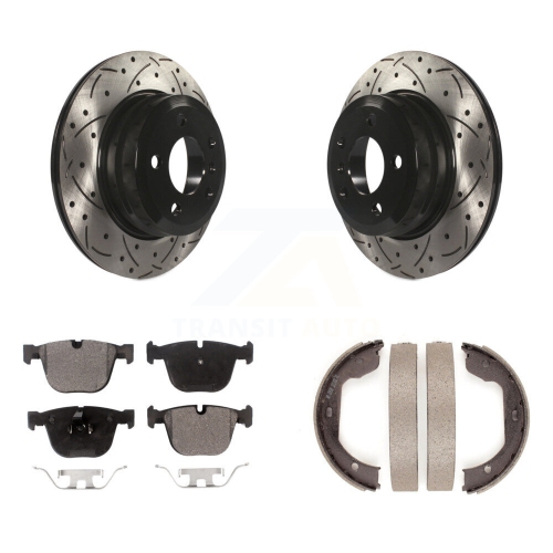 Disques arrière perforés et plaquettes semi-métalliques Jeu de segments de frein de stationnement pour BMW X6 KDF-101518