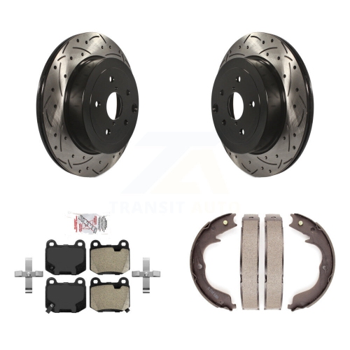 Disques arrière perforés et rainurés Plaquettes semi-métalliques et segments de frein de stationnement pour KDA-103416