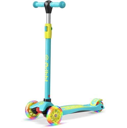 Dribbl 3-Wheel Kids Scooter – Lean-to-Steer Kick Scooter with Adjustable Handlebar, Anti-Slip Deck, Supports Up to 165 lbs – For Boys & Girls Age 3+, Aqua & Yellow