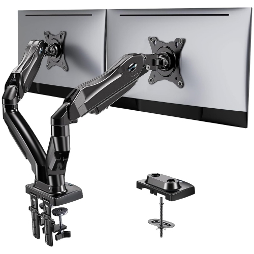 Dual Monitor Stand - Adjustable Spring Monitor Desk Mount Swivel Vesa Bracket with C Clamp, Grommet Mounting Base for 13 to 30 Inch Computer Screens - Each Arm Holds 4.4 to 19.8lbs
