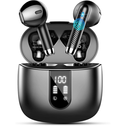 Écouteurs boutons sans fil, écouteurs Bluetooth 5,3 Hi-Fi stéréo, écouteurs boutons sans fil miniatures 40H avec microphone à suppression du bruit ENC 4, écouteurs bouton étanches IP7, écouteurs boutons à écran numérique LED, commandes tactiles