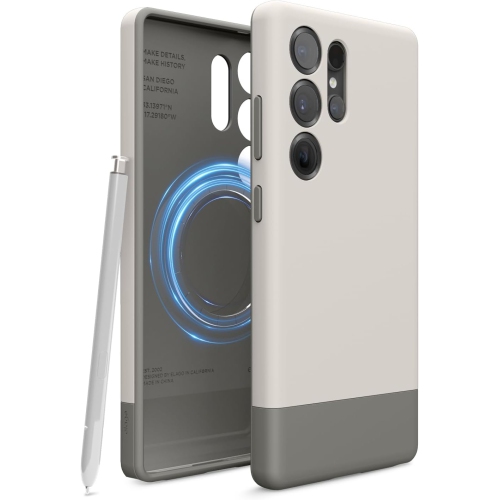 Elago compatible avec l'étui pour Galaxy S25 Ultra de Samsung – Étui à glissière magnétique, découpes précises pour caméra, magnétisme robuste, couvercle de protection, PC/TPUR Pare-chocs antichoc, 6,8 po (pierre/gris moyen)