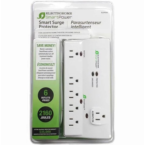 Electrohome – Parasurtenseur SmartPower, protection de 2160 joules, cordon de 6 pi, blanc