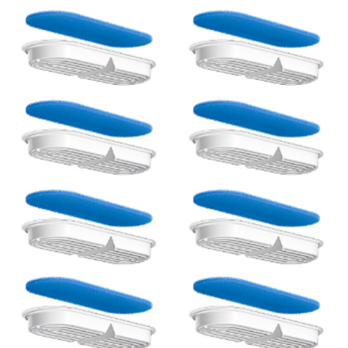 Élément de filtre du distributeur d'eau pour animaux de compagnie Filtration multicouche haute efficacité adapté aux distributeurs d'eau pour chats Élément filtrant bleu et blanc amélioré 8 pièces