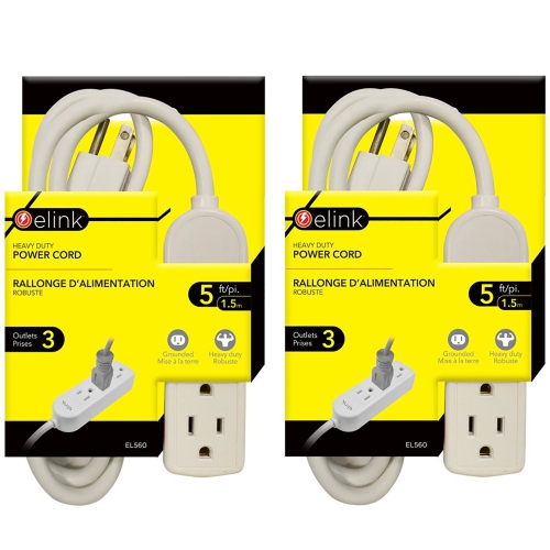ELink – Ensemble de 2 3 barres d’alimentation robustes, 5 pi de longueur, blanc