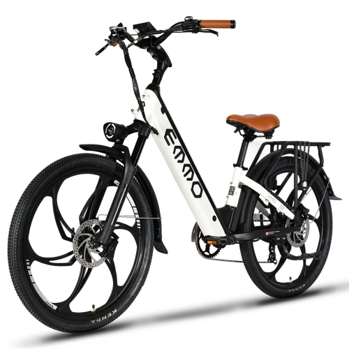 EMMO VMO Pro Electric Bike - Low Step Thru Frame 500W - UL 2849 Certified - 48V17.5Ah Battery - White - Front Suspension
