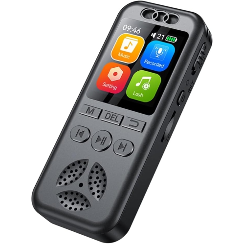 L'écran couleur de 1,44 po et le fonctionnement intuitif à un bouton rendent l'enregistrement facile et pratique, tandis que l'activation vocale et l'enregistrement minuté sont la cerise sur le gâteau. Il est doté d'un réglage de gain à 7 niveaux et d'un haut-parleur puissant pour une excellente qualité sonore dans n'importe quel environnement.
