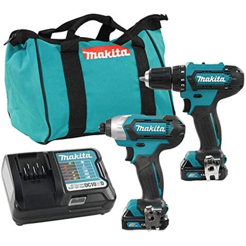 • COMPREND : Perceuse à percussion de 3/8 po (DF333DZ), tournevis à percussion de 1/4 po (TD110DZ), deux batteries Li-ion CXT de 12 V MAX (1.5 Ah) BL1016, chargeur standard (DC10WD, sac à outils (832035-1).