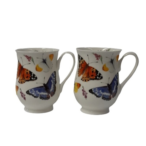 Ensemble de 2 tasses en porcelaine fine à la cendre d’os Roy Kirkham “Eleanor” décorées à l’avant et à l’arrière avec les insectes Butterfly Garden.