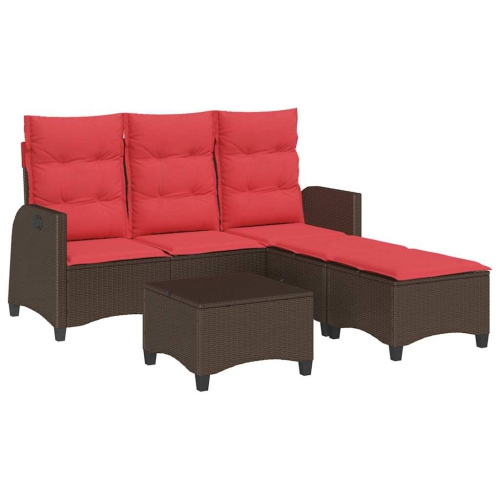 Ensemble de 3 pièces avec canapé de jardin et coussins en L brun et rotin de polyester vidaXL