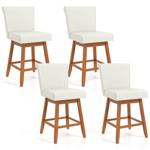 Ensemble de 4 tabourets de bar pivotants de Costway 27 avec pattes en caoutchouc et revêtement en lin beige