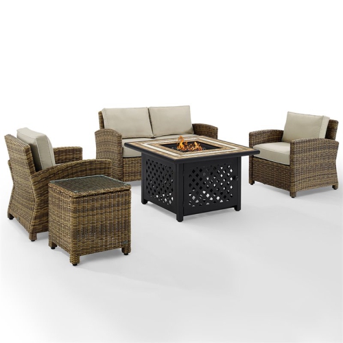 Ensemble de 5 pièces avec sofa et foyer de patio Bradenton de Crosley - Brun et sable