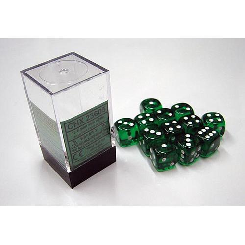 Ensemble de dés 12D6 - Vert translucide avec blanc (23605)