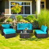 Ensemble de meubles de patio en rotin 6 pièces de PatioJoy avec pouf de dos de canapé rembourré - Turquoise - Rouge - Bleu marine - Noir - Blanc