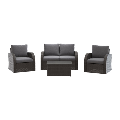 Transformer votre espace de vie extérieur en une zone de détente luxueuse avec l'ensemble canapé 5 pièces Brisbane Outdoor Loveseat. Vous allez adorer le design élégant et les caractéristiques de qualité, parfaits pour votre espace extérieur, grand ou petit.Vous recevrez deux chaises confortables, un canapé-lit douillet et une élégante table basse, chacun avec des coussins résistants aux intempéries, moelleux et généreusement rembourrés et un design en osier résistant aux UV. Le cadre en acier galvanisé haute résistance offre stabilité et durabilité tout en étant résistant à la rouille. La t