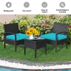 Ensemble de patio de 3 pièces en rotin Gymax avec coussins turquoise