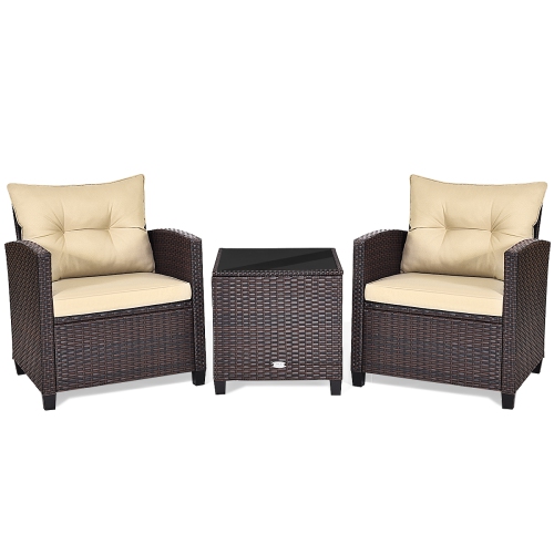Ensemble de patio rembourré en osier de 3 pièces de TopBuy