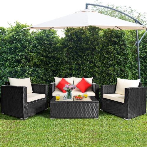 Ensemble patio de 4 pièces en rotin et osier de PatioJoy avec sofa modulaire et table basse