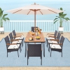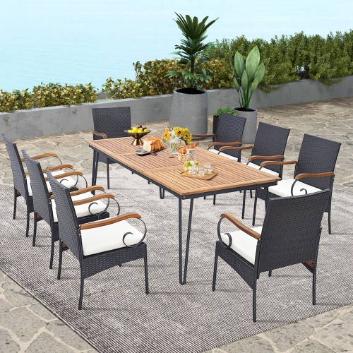 Ensemble patio de 9 pièces en rotin avec table en bois d'acacia, coussins, trou de parasol de 1,9 po de Costway