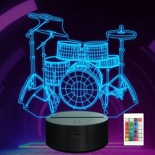 Ensemble tambour Ammonite avec veilleuse, lampe 3D Illusion pour enfants, 16 couleurs avec télécommande et minuterie, choix d’idées pour MU