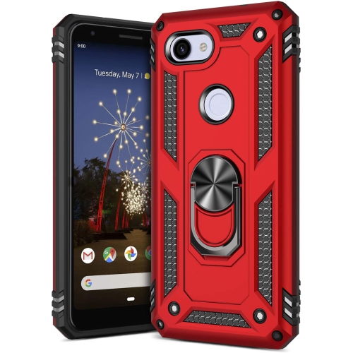 Étui béquille de Ring pour Pixel 3a de Google, étui robuste double couche de protection contre les chutes, coque rigide, TPUR souple et support à anneau pour support magnétique de voiture, rouge