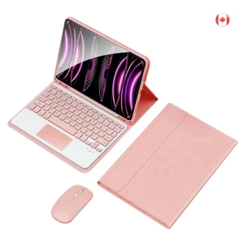 Améliorez votre iPad 10,9 (2022) avec cet élégant étui folio à rabat en cuir de polyuréthane rose. Comprend un clavier et une souris sans fil Bluetooth pour une expérience de frappe complète et pratique