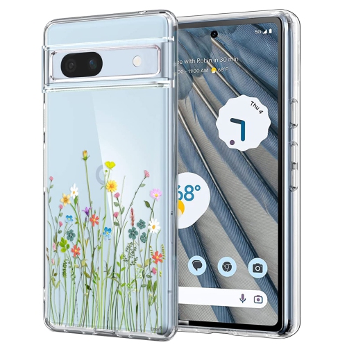 Étui compatible avec le Pixel 7a Clear avec Design Soft Shock absorption des chocs Étui arrière protecteur mince en relief pour Pixel 7a 5G de 6.1 po (bouquet de fleurs)