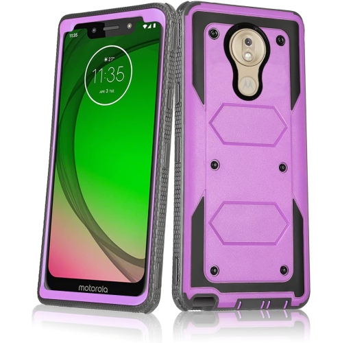 Conception pour : Uniquement compatible avec le Moto G7 Play / Moto G7 Optimo / Tmobile Revvlry ( 5,7 po) DE Motorola, NON compatible avec le Moto G7 ou d'autres appareils.Attention : cet étui de téléphone ne comporte pas de protecteur d'écran intégré. Si votre téléphone colle le protecteur d'écran, il peut y avoir une légère incompatibilité entre les boutons de volume.Materal : Étui pour téléphone hybride fait de caoutchouc absorbant les chocs et de plastique rigide durable.Excellente protection : bords surélevés autour de l'écran et de la caméra , wi